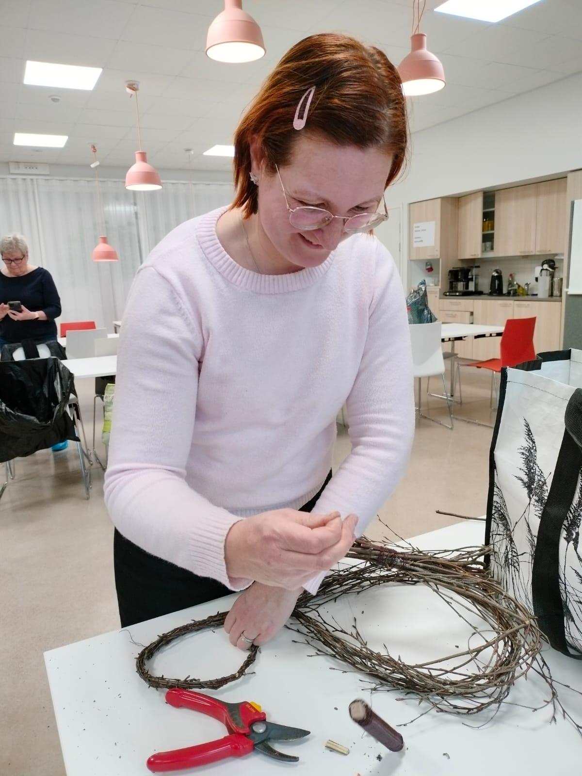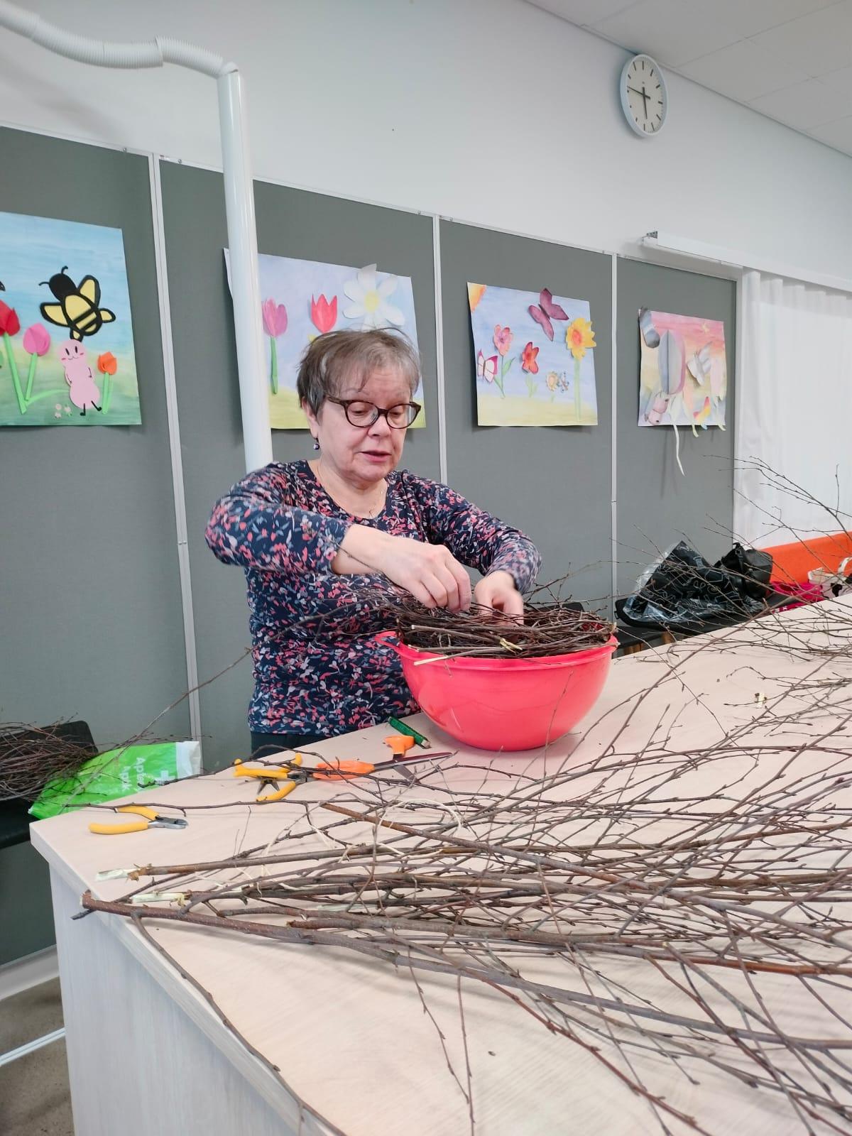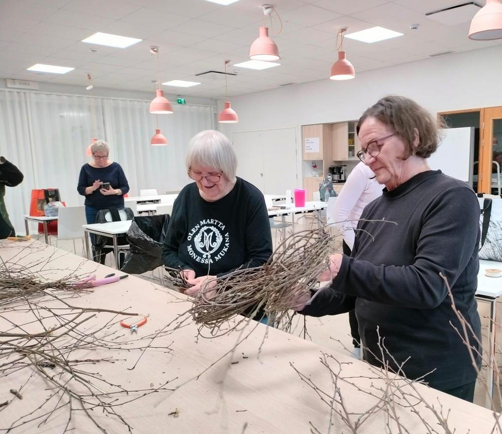 Teimme pääsiäiskransseja marttaillassa.